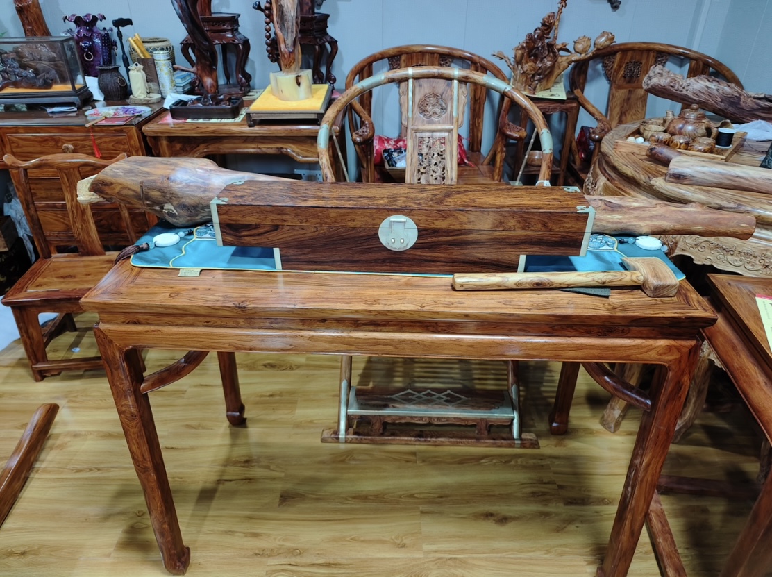 主要原料,海南黄花梨木料置于仓库「阴干三年」以上,充分保证木质的稳定和油性,防止因天气干燥导致开裂变形。并坚持使用环保树脂胶水以及天然蜂蜡为辅助材料。