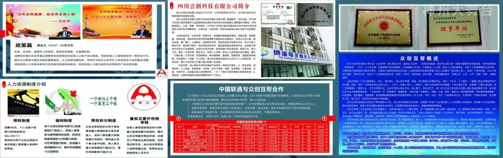 四川雲创科技有限公司打造“众创互帮”商城平台,是根据国办发【2018】129号文件精神,鼓励民营企业,万企帮万村,采取“以购代捐,以买代帮”等形式,服务三农助力三农,实现消费扶贫,助力国家脱贫攻坚战,习近平总书记:“没有全民健康,就没有全面小康”的基本国策;李克强总理:多种制度解决“因病致贫”,不让一个人生大病,全家都倒下的讲话精神,解决老百姓“看病难、看病贵”,“因病致贫、因病返贫”的难题,实现“一人有难,万人帮扶”,一人参与,全家受益,快乐消费,大爱无疆的理念。