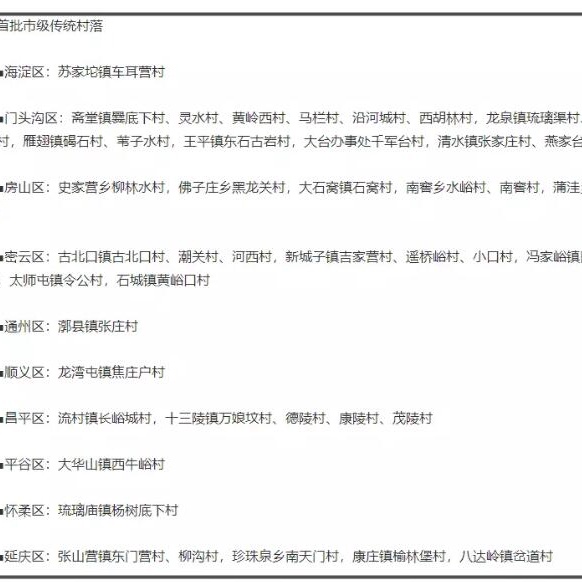 最后附上此次入选北京首批44个市级传统村落的名单!