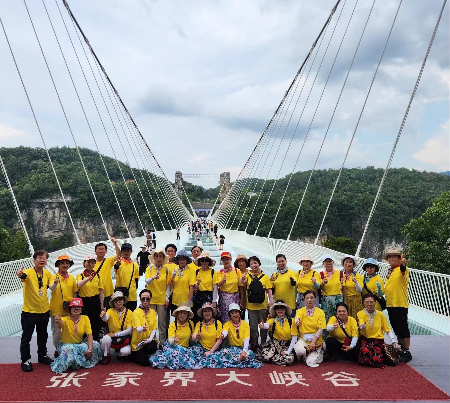 全团一行30余人以饱满热情、好奇的心态,游览了美丽的张家界天门山国家森林公园,天子山自然保护区,仙女散花,御笔峰,西海,贺龙公园,天下第一桥,迷魂台,张家界大峡谷,宝峰湖 等土家风情园等景区,大自然所赐予的奇特风景,让参访者们纷纷赞叹不已。
