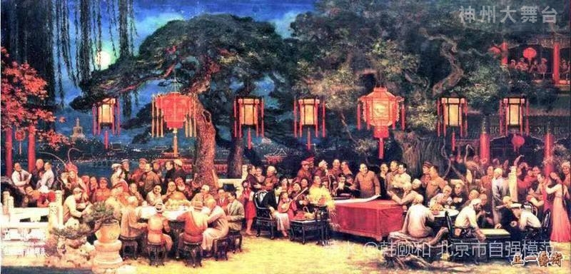 油画作品《良辰》中有包括李嘉诚、成龙等数百位家喻户晓的政界、商界、文化艺术界等几百位各界名流。