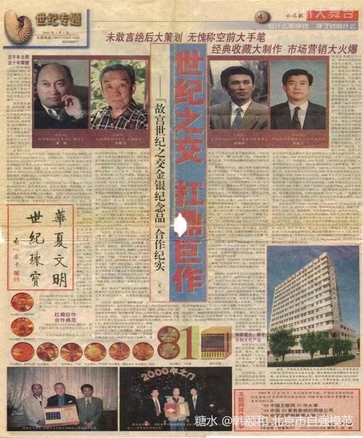 3.韩颐和作为总策划、总设计,与故宫博物院合作,制作出了“未敢言绝后,无愧称空前”的庆祝共和国50大庆的国礼。