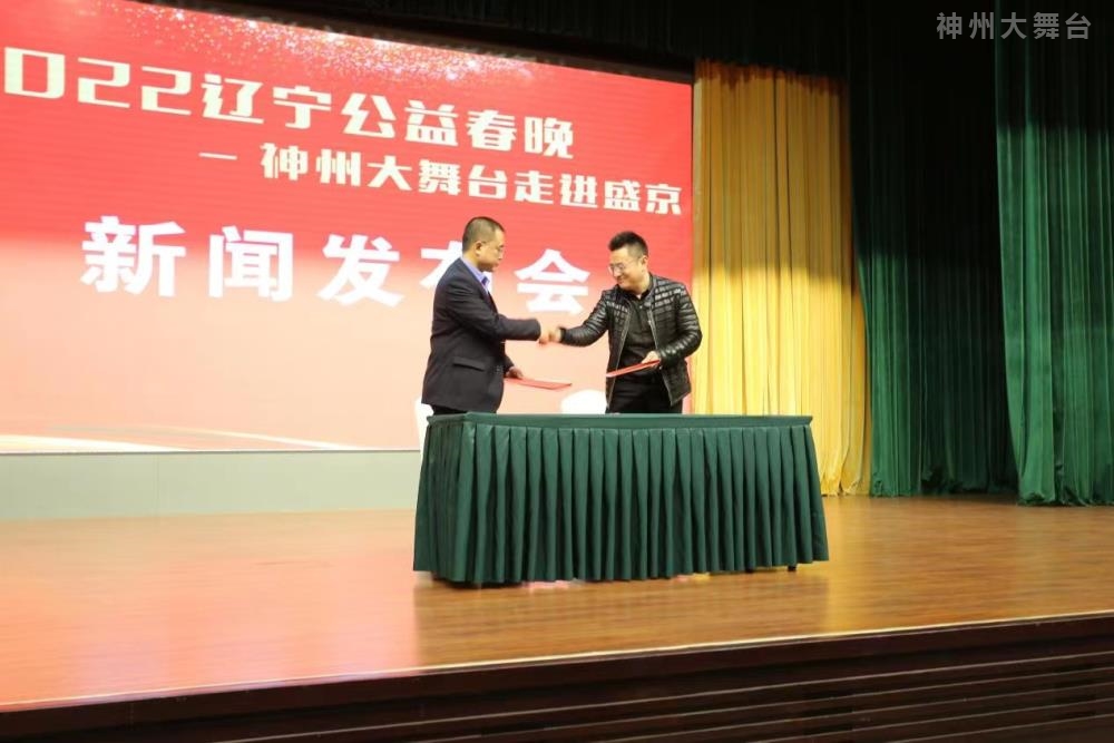 新闻发布会上,神州大舞台辽宁站公益春晚节目组和辽宁芯荣家电市场有限公司,辽宁芯荣仓储物流有限公司弓箭先生签署捐赠协议。