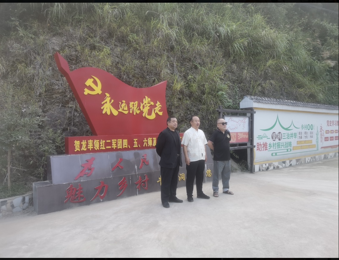 由[世界传媒]董事局主席邀请:中央电视台著名导演、星光大道创始人之一康舰,特型影视演员贺龙扮演者、彭德怀扮演者、陈毅扮演者于2023年9月15日前往张家界市永定区教字垭镇牛角洞村部文化广场举行别具一格的牛角洞村民巜红色文化传承》联欢晚会,牛角洞村支两委会与张家界市永定区政府办驻牛角洞村工作队为发力加强牛角洞红色文化和产业振兴宣传,充分利用世界传媒和神州大舞台平台,邀请了中央电视台著名导演康舰和贺龙、彭德怀、陈毅三位特型伴演者国家一级演员到晚会借力助阵,教字垭镇党委委员向宇前来参加了晚会。