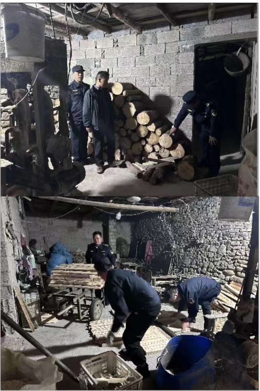 张家界永定区教字垭镇:利剑执法守护林业生态环境通讯员:覃薇为了加强松材线虫病防控工作,切实维护林业生态良好环境。教字垭镇联合永定区林业局执法队近日对该镇辖区内一木制品加工厂开展联合夜袭执法,查处该木制品加工厂利用松材加工椅子的原材料达5个立方及半成品两件。